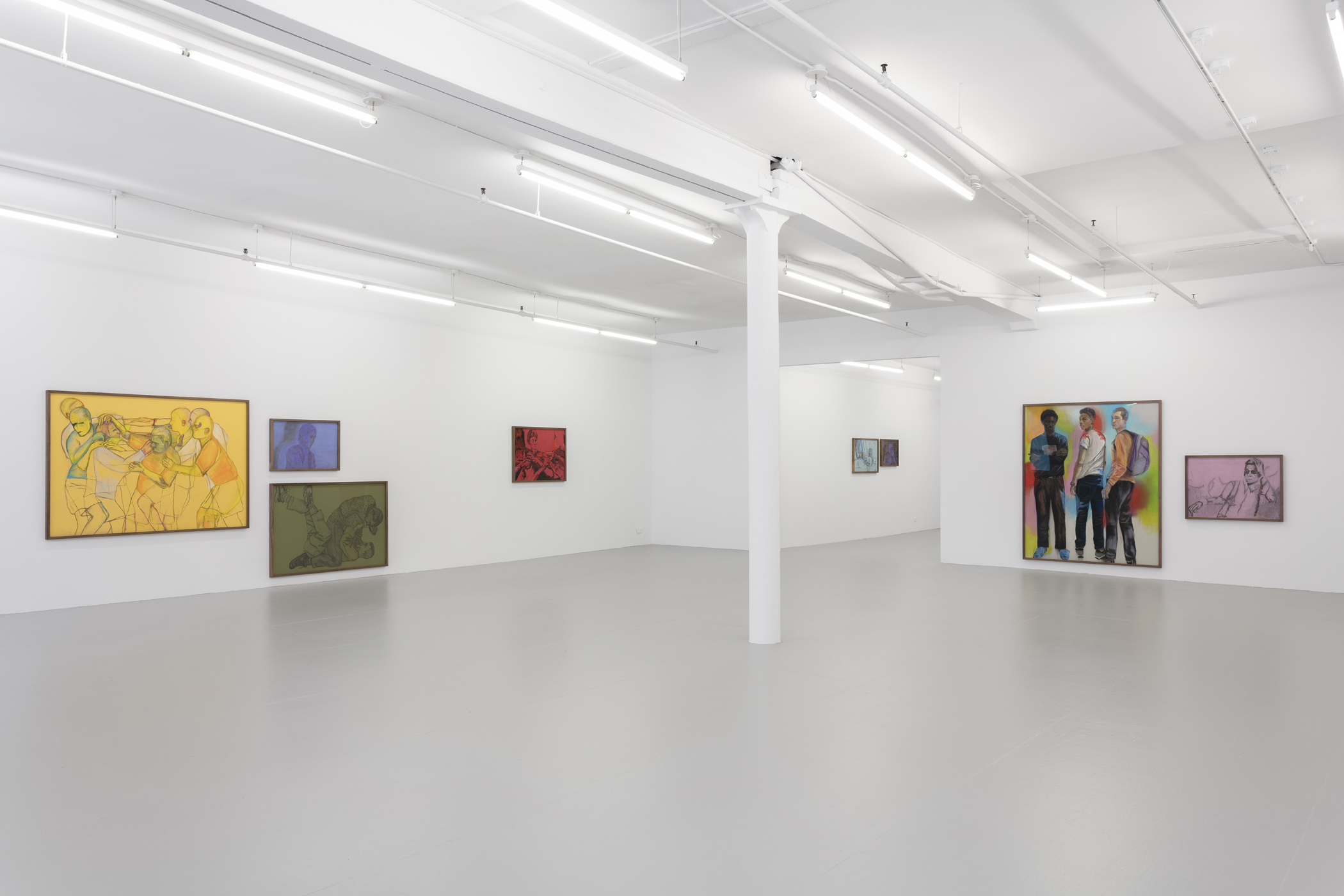 Charcoal, gouache, graphite, oil pastel, and watercolor on seamless paper in artist’s frame